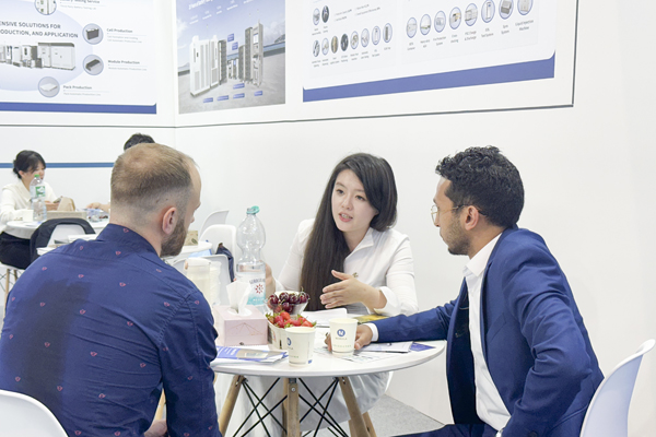 深耕鋰電池檢測領(lǐng)域20余年的星云股份可提供鋰電池從研發(fā)到應(yīng)用的全方位測試產(chǎn)品及解決方案,覆蓋“電芯-模組-PACK”全生命周期的關(guān)鍵環(huán)節(jié),并廣泛應(yīng)用于3C數(shù)碼、新能源汽車、電動船舶、儲能等領(lǐng)域。本屆展會中,星云股份圍繞鋰電池全生命周期的檢測技術(shù)、檢測設(shè)備,從多個維度展示了公司為鋰電池研發(fā)、量產(chǎn)、使用提供全方位安全測試服務(wù)的實力和優(yōu)勢。憑借高測試精度、高穩(wěn)定性、快速電流響應(yīng)、能量回饋技術(shù)運用、模塊化設(shè)計等突出的高性能優(yōu)勢,以及可根據(jù)客戶需求進行定制化服務(wù)的特點,星云股份的產(chǎn)品及解決方案吸引了海外多家知名廠商的重點關(guān)注與咨詢。鋰電池智能制造也是近年來業(yè)界關(guān)注的焦點,星云股份在展會中也展示了鋰電池PACK自動化組裝生產(chǎn)線、儲能集裝箱裝配等領(lǐng)域的智能制造解決方案,以及鋰電池檢測實驗室能源管理系統(tǒng)解決方案,相關(guān)產(chǎn)品和技術(shù)運用能夠有效保障鋰電池研發(fā)、生產(chǎn)過程的可靠性、穩(wěn)定性,幫助客戶提升產(chǎn)品研發(fā)效率、產(chǎn)線產(chǎn)能、產(chǎn)品品質(zhì)。