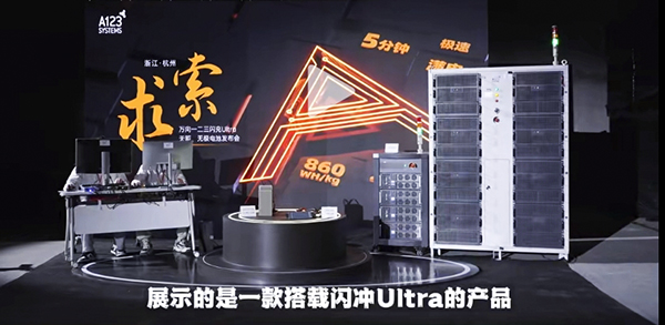 星云150V 400A模組充放電測試系統(tǒng)(右一)、星云10V300A電芯充放電測試系統(tǒng)(右二)出現(xiàn)在萬向一二三12C超高倍率“閃充Ultra電池”發(fā)布會視頻中